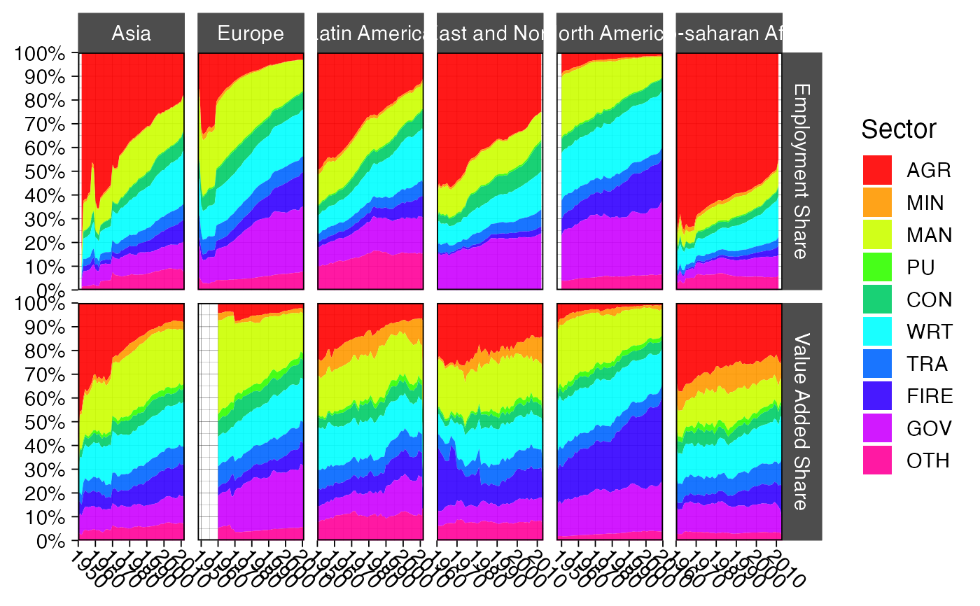 GGDC10S.RdThe GGDC 10-Sector Database provides a long-run internationally comparable dataset on sectoral productivity performance in Africa, Asia, and Latin America. Variables covered in the data set are annual series of value added (in local currency), and persons employed for 10 broad sectors.